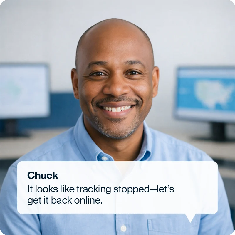 Chuck calls drivers if a load is not tracking or stops tracking for a set amount of time to confirm their status and help get them tracking again.