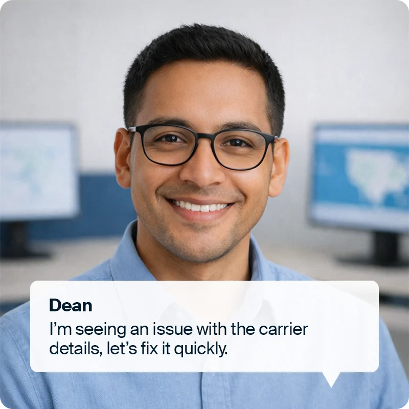 Dean identifies and fixes bad carrier data (invalid phone number, truck IDs, etc.).
