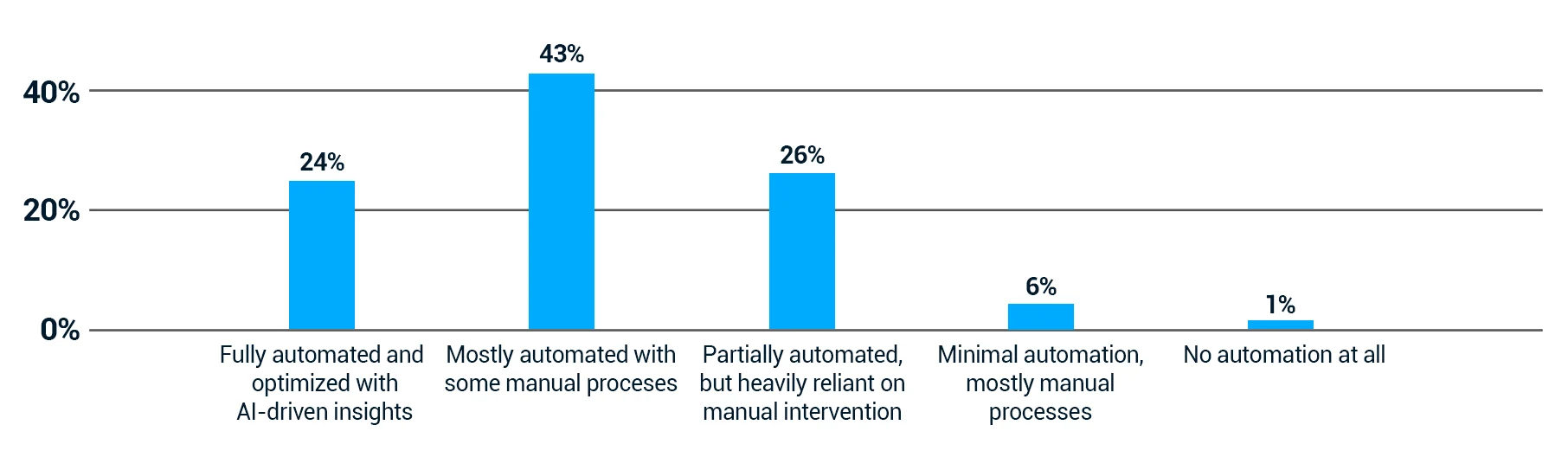 Only 24% of NA shipper transportation teams are fully automated, while one-third remain heavily or mostly manual. This stark reality means many shippers still spend excessive time on phone calls, emails, and spreadsheets.